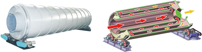 滾筒烘干機是熱氣流從尾部向前運動,與物料充分接觸,通過熱傳導(dǎo)、對流、輻射傳熱量充分利用;